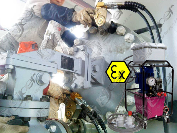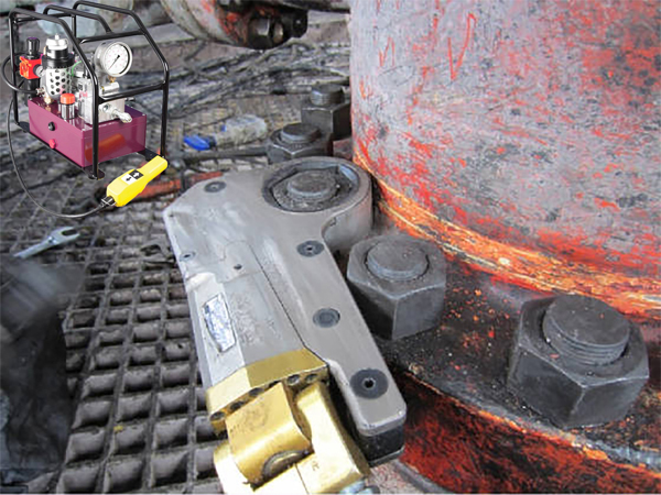 石油化工行業(yè)合成塔器螺栓螺母專用派柏進口防爆氣動中空液壓扭矩扳手