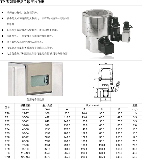 石油化工行業(yè)加氫反應器催裂化裝置螺栓螺母專用派柏進口彈簧自動復位液壓螺栓拉伸器