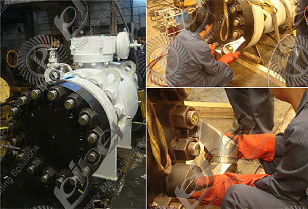 防治對(duì)策,根據(jù)上述分析,浮頭密封失效問(wèn)題可采取以下措施進(jìn)行處理。 (1)換熱器的制造已經(jīng)實(shí)現(xiàn)標(biāo)準(zhǔn)化,所用墊片都依據(jù)標(biāo)準(zhǔn),訂貨時(shí)盡量按照標(biāo)準(zhǔn)規(guī)定的規(guī)格型 號(hào)提出,而不是提供具體的尺寸; (2)在安裝墊片前對(duì)墊片進(jìn)行檢查,表面質(zhì)量不合格、型號(hào)不對(duì)或尺寸偏差較大的禁止使用; (3)在安裝浮頭法蘭前對(duì)浮動(dòng)管板和浮頭法蘭的密封面進(jìn)行徹底清理,清理干凈后對(duì)密封面進(jìn)行外觀(guān)檢查,發(fā)現(xiàn)有凹坑、溝槽或邊緣缺損嚴(yán)重時(shí)應(yīng)對(duì)其進(jìn)行處理。通常的方法是補(bǔ)焊修磨,修磨后要保證修磨的表面平整光潔,不允許存在凸起或新的凹面,必要時(shí)可涂抹工業(yè)膠粘劑。在檢查密封面的同時(shí),也要檢查浮頭法蘭的分程隔板有無(wú)異常變形,如有也要進(jìn)行矯正,合格后安裝; (4)加裝墊片時(shí)應(yīng)有保護(hù)措施,防止局部擠壓、磕碰墊片;同時(shí)讓墊片在密封面上均勻分布,不要外露出密封面,而且兩個(gè)密封面盡量同軸,增加有效密封面積; (5)我們推薦使用進(jìn)口PIPER派柏兩同步或四同步防爆電動(dòng)方驅(qū)液壓扭矩扳手緊固螺栓時(shí)應(yīng)先對(duì)稱(chēng)緊固上下左右四個(gè)方位,然后依次對(duì)稱(chēng)對(duì)角緊固,防止墊片受力不均,緊固后對(duì)螺栓的預(yù)緊力進(jìn)行檢查,防止漏緊或松緊程度不一致;