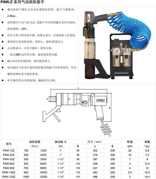 三、 回裝建議采用PIPER派柏進口防爆直柄彎柄定扭矩氣動扳手