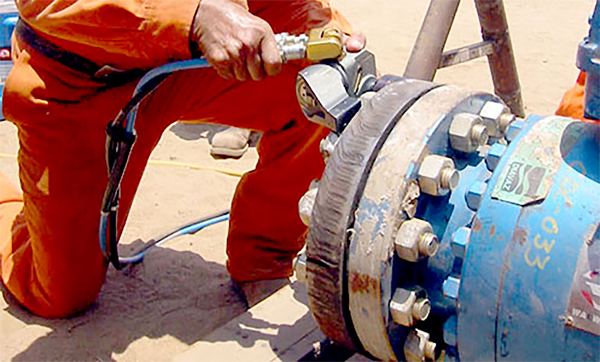 在緊固螺栓時(shí),要使用與螺母相匹配的PIPER派柏進(jìn)口數(shù)顯智能全自動(dòng)方驅(qū)液壓扭矩扳手,進(jìn)行緊固時(shí),注意不要超過(guò)規(guī)定的力矩,法蘭的緊固要避免用力不勻,應(yīng)按照對(duì)稱(chēng)、交義的方向順序旋緊,法蘭的安裝后,要確認(rèn)所有的螺栓螺母的堅(jiān)固均勻,螺栓、螺母的材質(zhì)必須符合規(guī)定。緊固后,螺栓頭應(yīng)從螺母中露出兩個(gè)螺距為宜,螺栓和螺線(xiàn)的緊固,為了防止振動(dòng)造成松動(dòng),要使用墊圈。為了避免高溫時(shí)螺紋間粘連,安裝時(shí)螺紋部位應(yīng)涂防粘劑(二硫化鉬),用于300攝氏度以上的高溫閥門(mén),在溫度上升后,必須對(duì)法蘭連接螺栓、閥蓋緊固螺栓、壓力密封螺栓以及填料壓蓋子螺栓再次旋緊。