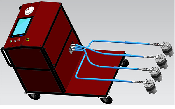 2、可移動(dòng)臺(tái)車結(jié)構(gòu),帶PLC控制系統(tǒng)及工業(yè)電腦, 顯示器帶觸摸屏,方便監(jiān)控和操作;語言:中文和英文可選擇;
